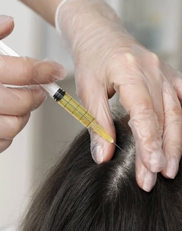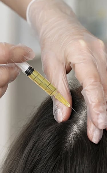 Terapia con plasma rico en plaquetas para estimular el crecimiento y fortalecer el cabello.