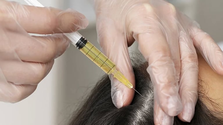 Terapia con plasma rico en plaquetas para estimular el crecimiento y fortalecer el cabello.